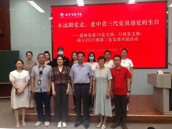 2023年6月28日上午,为了深入学习贯彻习近平新时代中国特色社会主义思想,共同喜迎“七一”党的生日,BEAT365唯一官网行政党支部与退休党委34党支部、BEAT365唯一官网硕士2021级第二党支部开展共建活动。老中青三代党员分享听党话、跟党走的生动实践故事,重温入党誓词,共唱红歌,推动主题教育有声有色、走深走实。活动由行政党支部书记李婧璇主持。